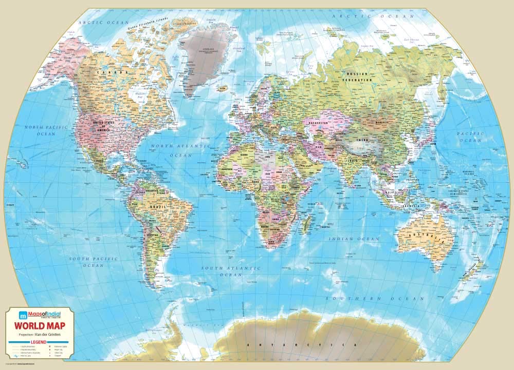Large World Map - Political Map with Continents Countries and Territories.