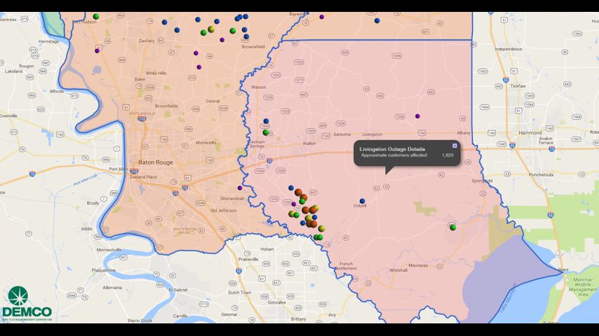 If you have recently reported an outage it may not show on the map until we have confirmed it as a power outage that requires one of our crews to restore. Color shows the number of customers without power. 2 days ago According to a map on DEMCOs website most of the power outages in Livingston Parish are clustered in the north and northwestern portions of the parish particularly the Watson area.