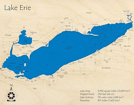 Our finishing techniques bring out the natural grain of the Baltic Birch and the solid-wood frame provides a gorgeous solid border to your new 3-D artwork. Lake Erie Topographic Map. Lake Erie fishing maps also include lake info such as gamefish abundance forage base water.