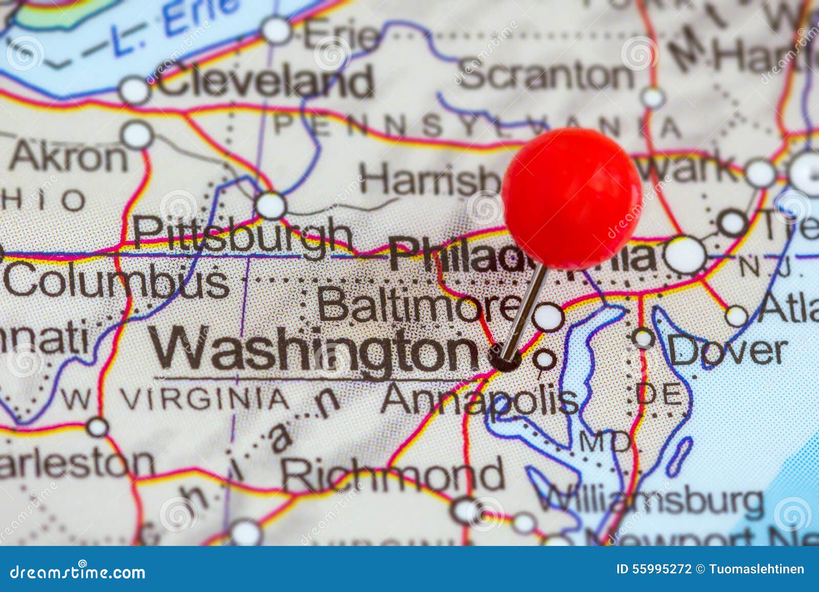 Red Clerical Needle On The Map Of Usa South Washington Dc And Stock Photo Picture And Royalty Free Image Image 129172702