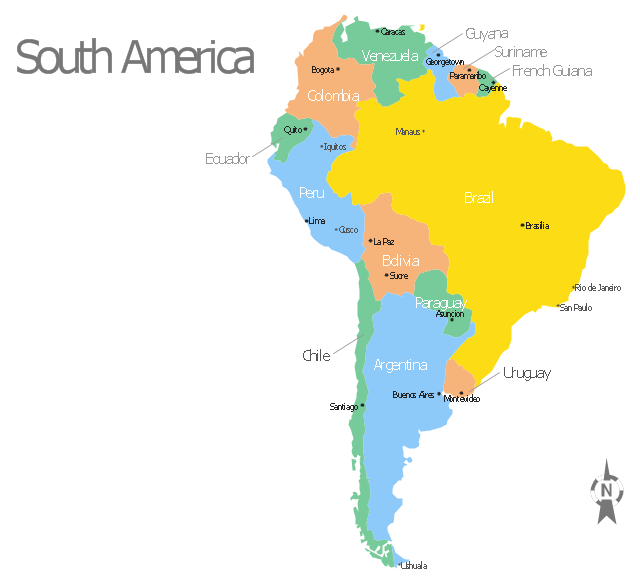 Vector Map Of South America Continent With Countries Capitals Royalty Free Cliparts Vectors And Stock Illustration Image 110616451