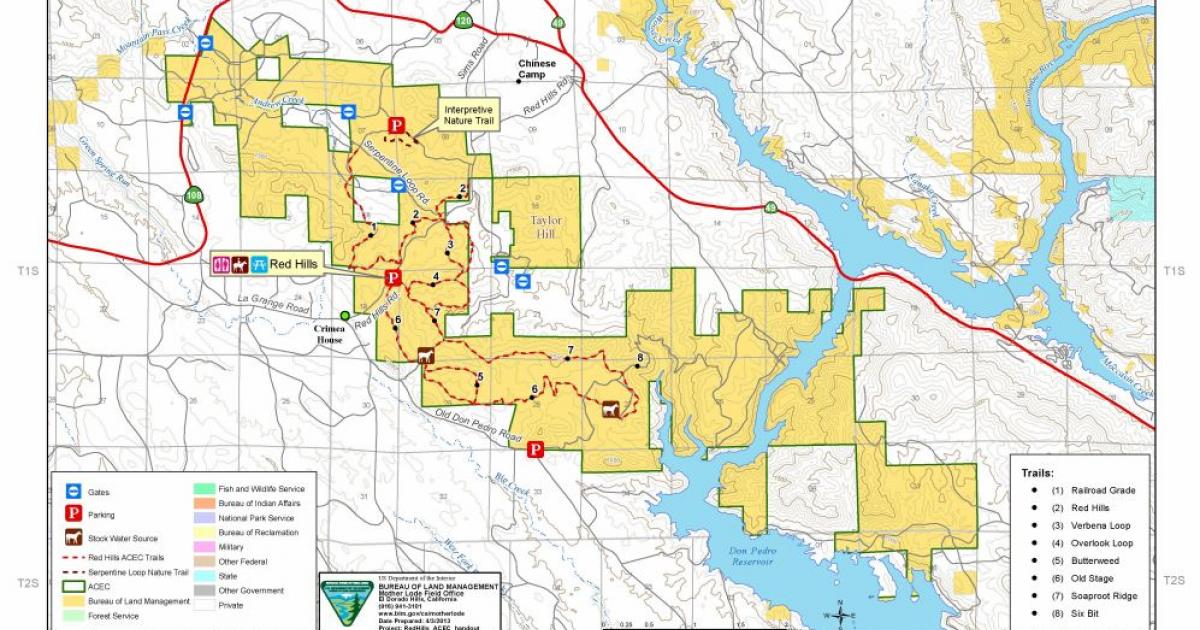Layer USFS and BLM boundaries on maps. Travel 38 miles on U. Highway 99 travel 40 miles east on State Highway 140 to the town of Mariposa.